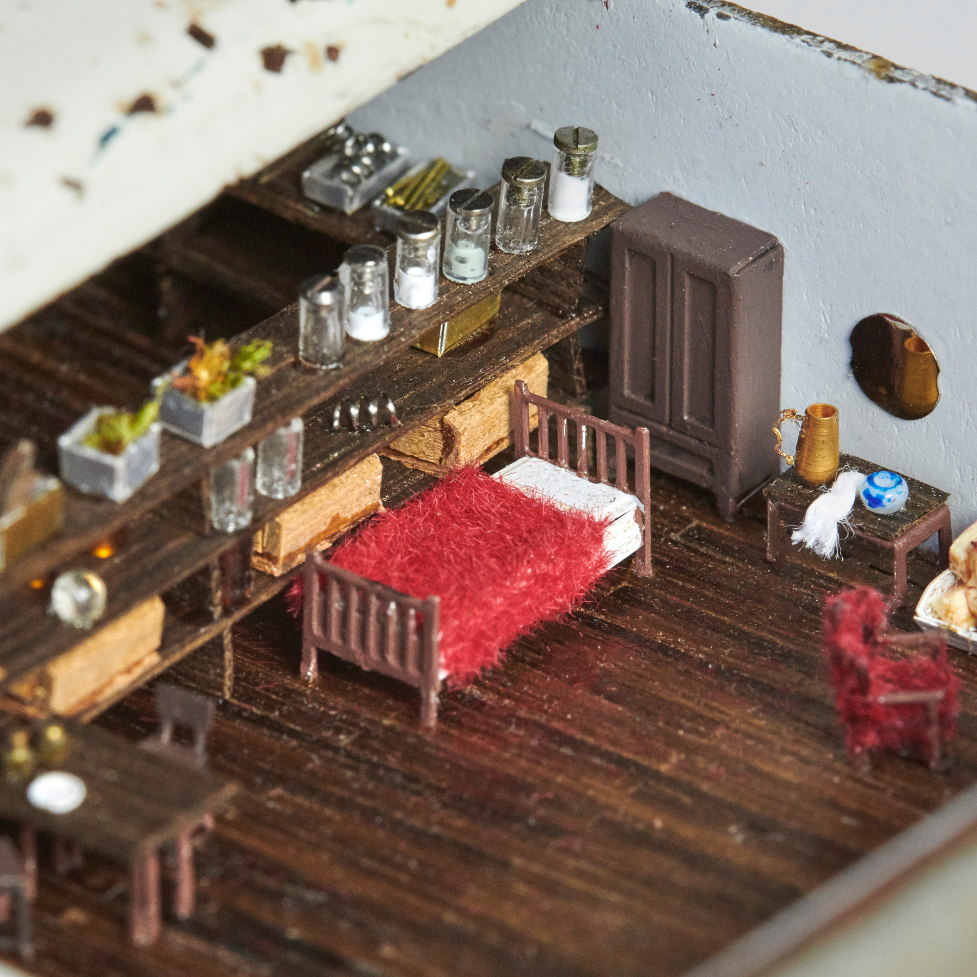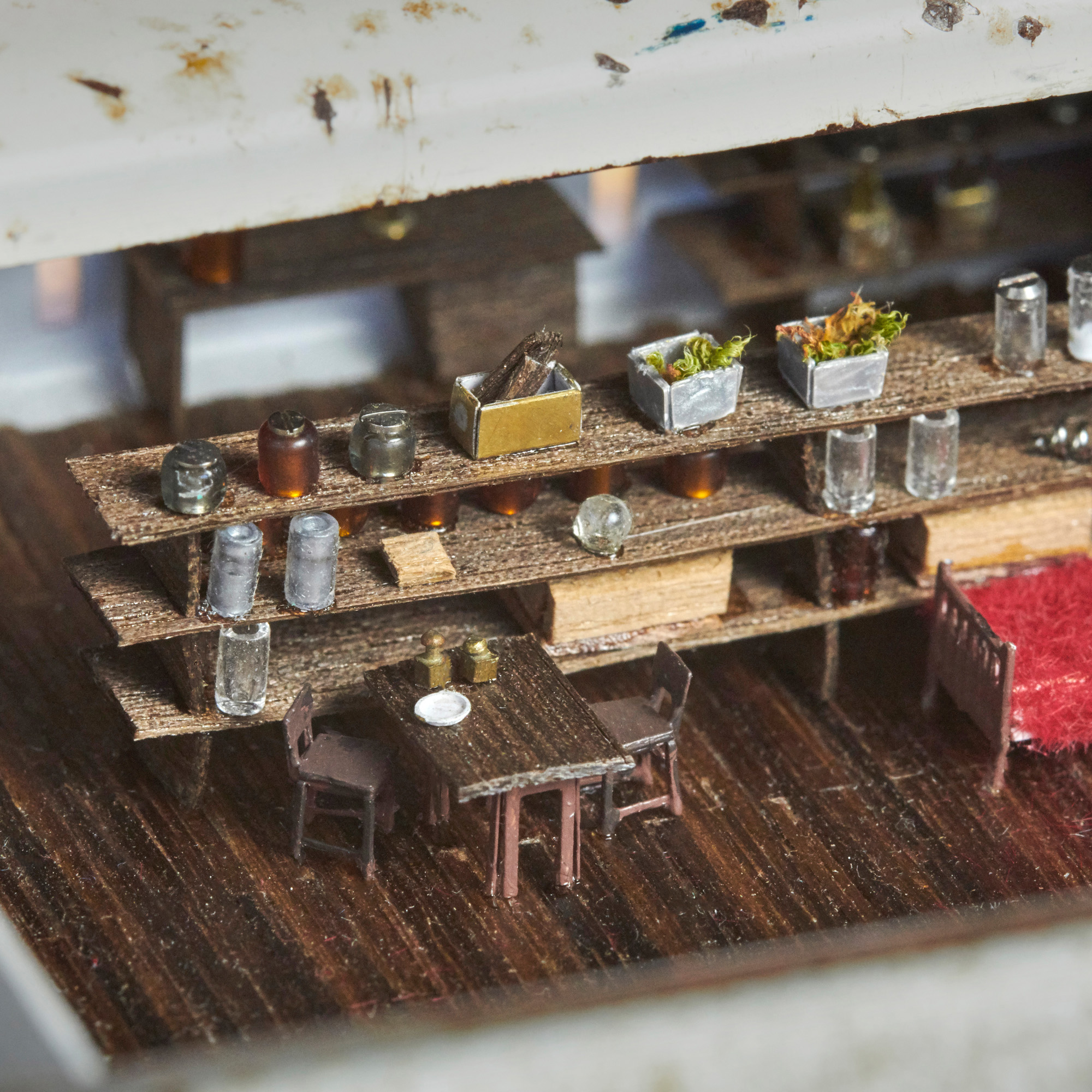 And through the doors there is the stock room and a small living space with all the basics so the old chemist can cook, wash and rest their weary feet by a warming fire after a long day. 1:148 scale