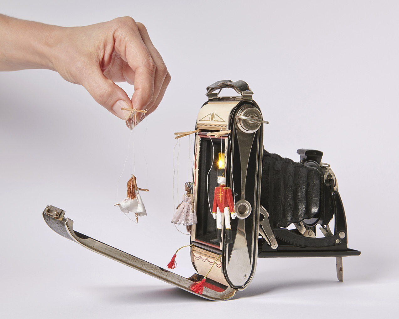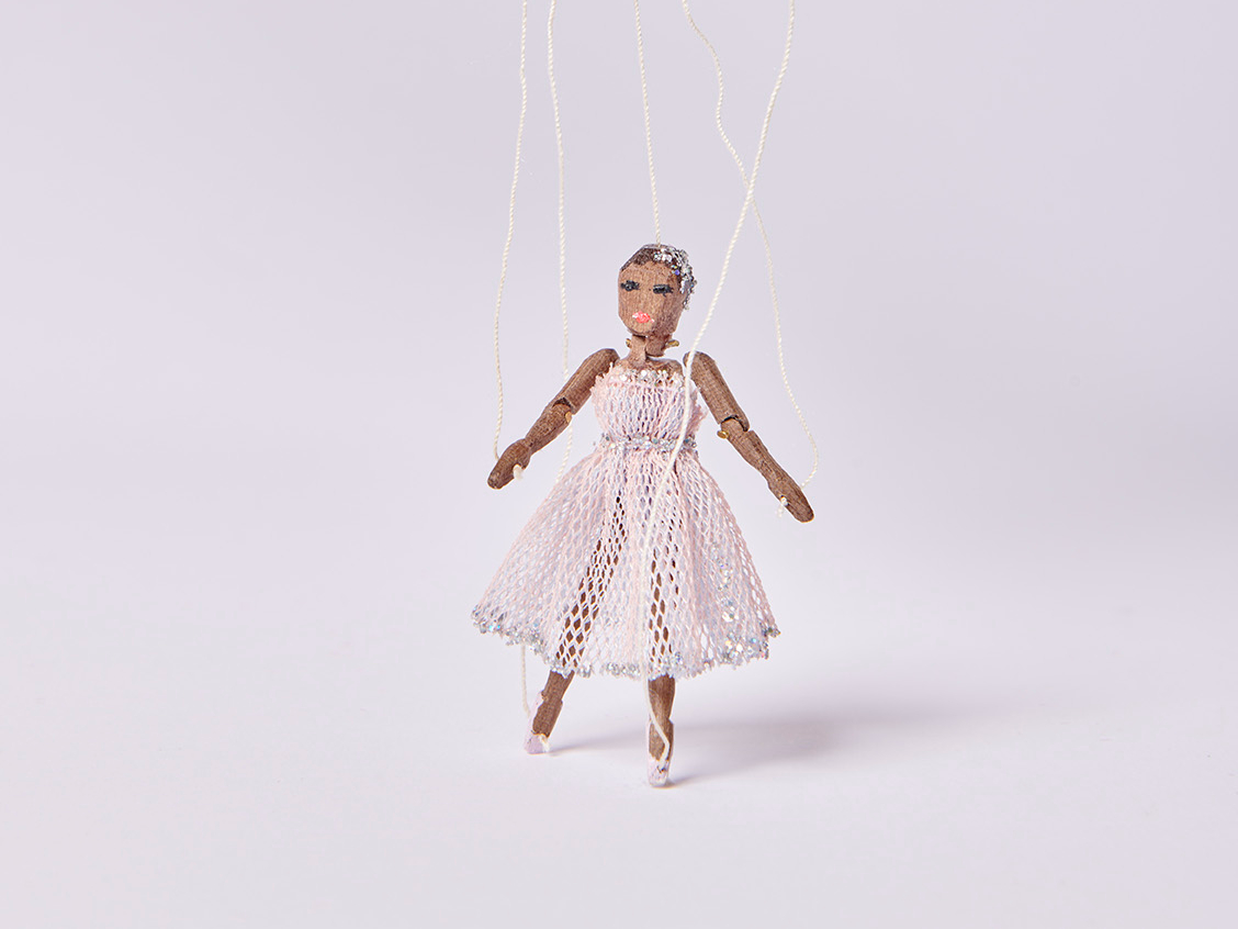 Inside their bespoke cardboard boxes are three jointed wooden string puppets: Clara, the Sugar Plum Fairy and the Nutcracker himself.