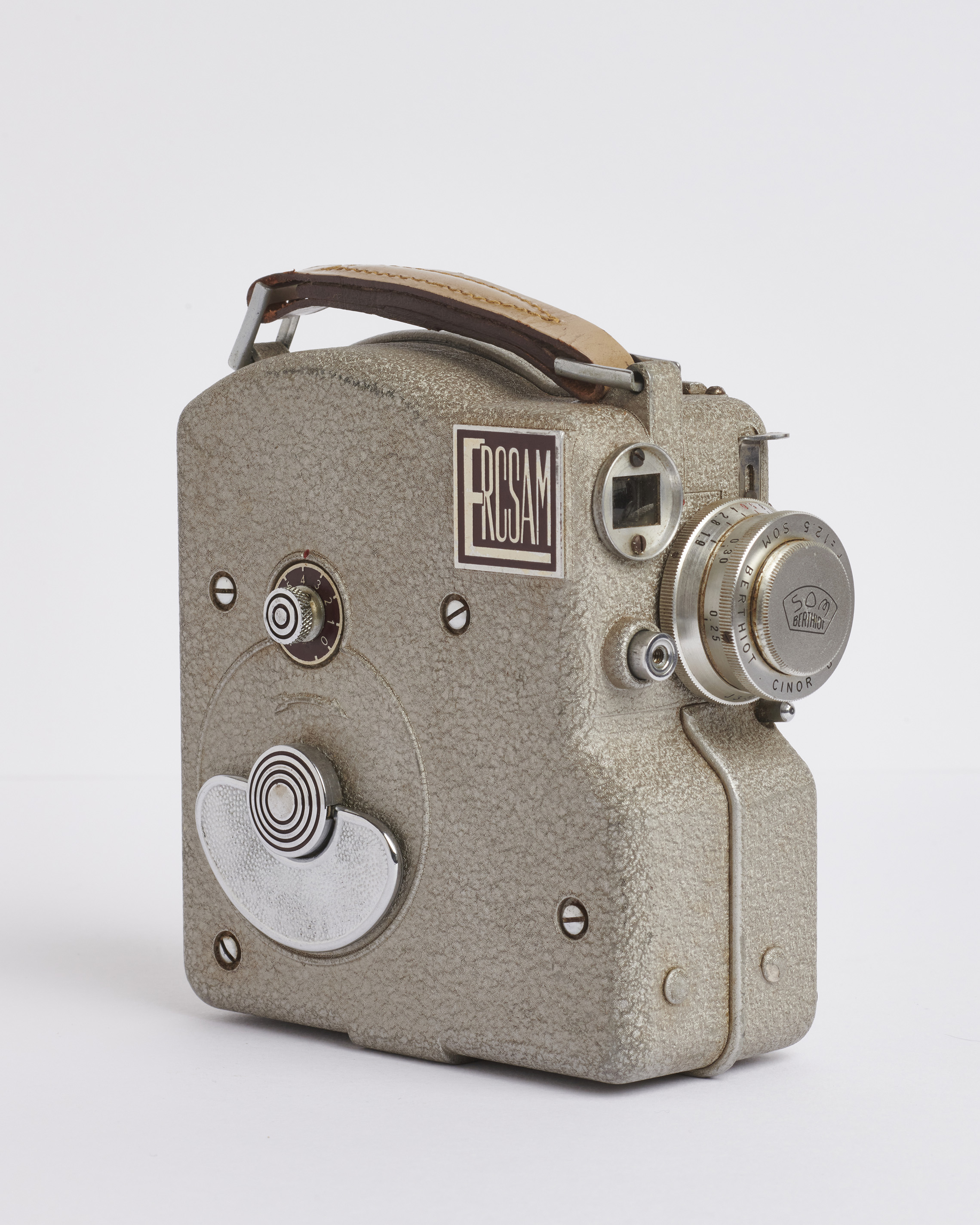An Ercsam vintage super 8 cine camera with Berthiot Cinor lens, containing a cinema.